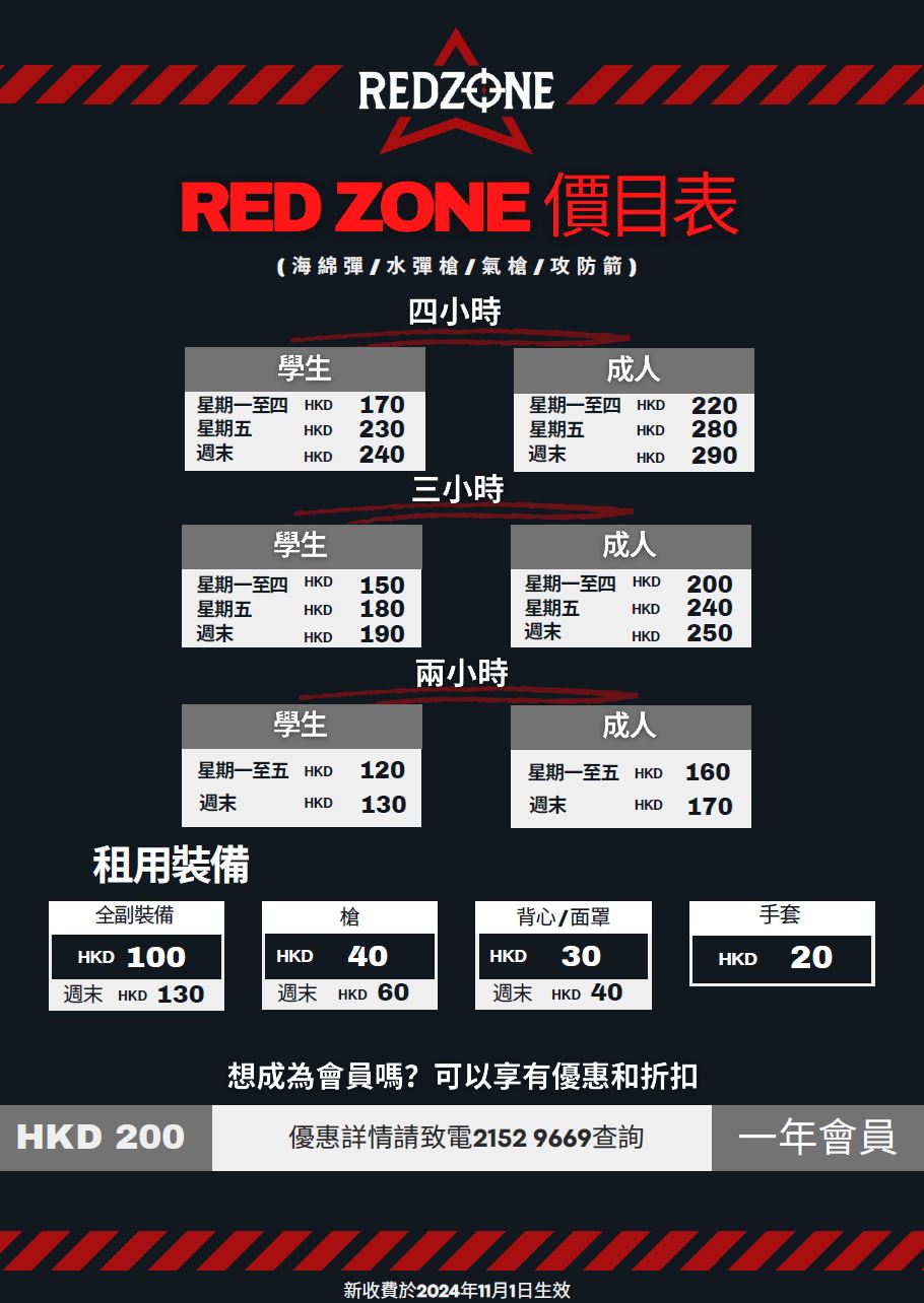 在Red Zone,我們接受Visa、MasterCard、支付寶、微信支付、八達通、FPS、Payme和現金。